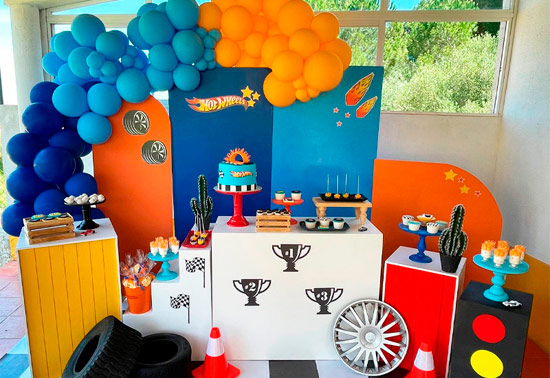 Hot Wheels party decoration theme with energy, color, and a visually striking atmosphere.